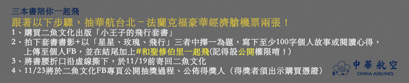 《小王子》以簡單清新的文字,七十餘年來說著一個讓人忘不了的故事,其中蘊含著聖修伯里深刻的哲思。但你可以知道,是什麼樣的經歷能讓聖修伯里寫出讓我們深愛好久好久的文學?在寫出《小王子》前,他先是一名偉大的飛行員。而要深刻了解聖修伯里,《風沙星辰》和《夜間飛行》則是我們不可少讀的作品,小王子的入門書。