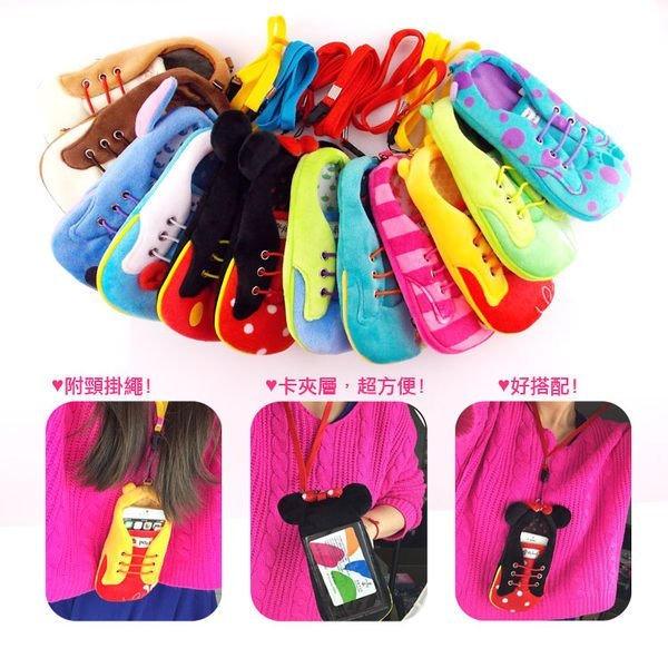 迪士尼 4.7吋通用可愛角色布鞋造型直入式票夾手機袋 手機套