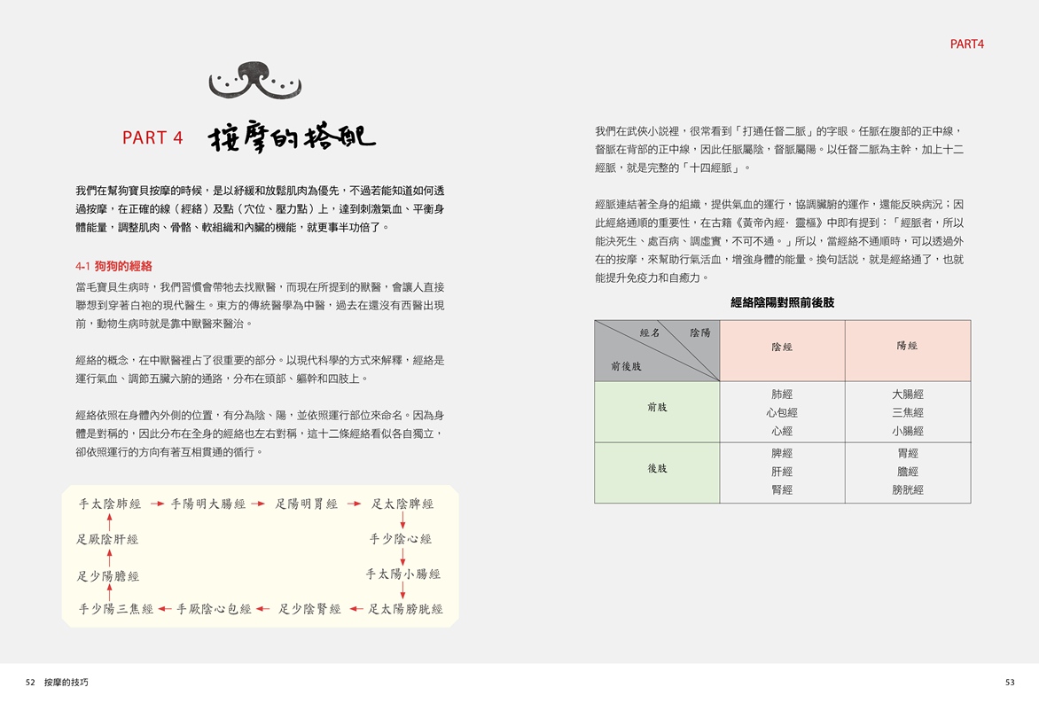 所以只要用愉悅的心情加上從頭到尾部的撫摸動作,並持續30分鐘,透過長時間的撫摸,不僅順了狗狗身上的氣,更加強牠身體的循環,這就是最基本也最簡單的按摩技法之一。