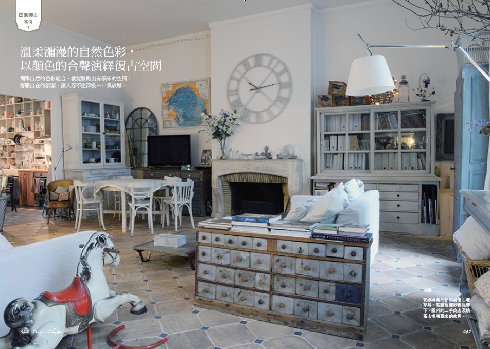 田園鮮明靈活的形象,加入老舊古物,可以增添室內裝潢的深度。法國人因為尊重並珍惜古物,運用巧思使物品蛻變重生,創造出田園復古風的獨到魅力。