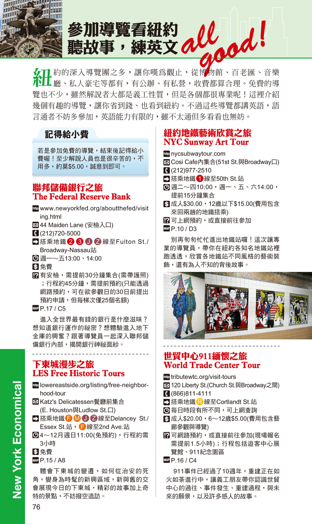 比起台灣,紐約的物價消費可是高高在上,買要繳稅、吃要小費、參觀景點也要花錢及排隊,既然已經花了大額旅費在機票、住宿上,交通費、參觀費等當然能省就省!整理出幾個最基本的省錢方法,雖然不能讓你省下幾百美金,但也夠讓你多個幾十元買紀念品!當然,省錢的終極方法,還是機票靠贊助、免費找住宿、下廚自己煮、逛街靠走路啦!