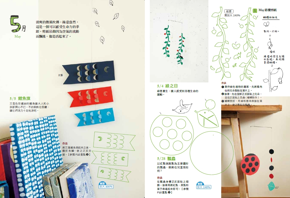 隨書附贈365個立體旋轉吊飾的紙型,只要有剪刀、色紙、銅線,按照書中的3步驟,就能輕鬆剪出超萌、超可愛的剪紙吊飾。讓我們盡情徜徉於雅緻又簡單的手作世界中,品嘗生活的美好點滴吧!