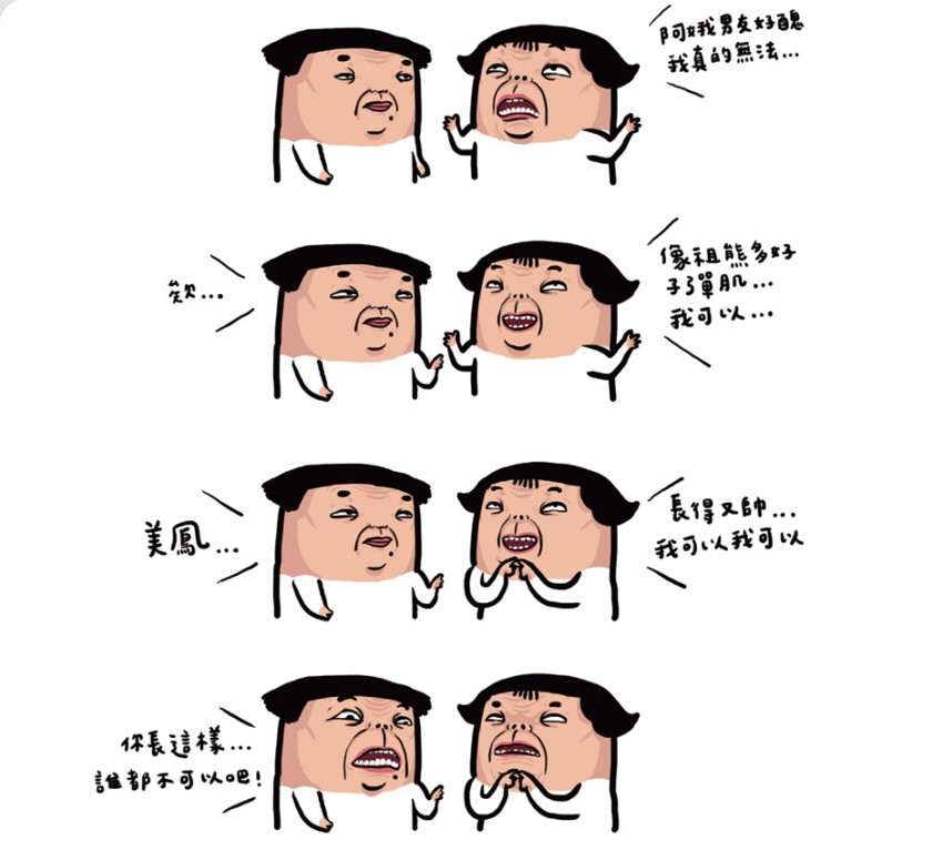.美鳳:白目、自我中心、超欠打,劉海五根毛,俏麗捲髮尾。