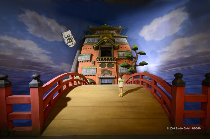 走進展場內,全部場景皆以大型立體造景呈現,讓民眾彷佛置身於吉卜力的動畫世界內。你可以跟等身大的龍貓、皋月及小梅一起等公車、坐在無臉男旁一起搭乘電車、親眼看見真的會動的霍爾的移動城堡、與巴魯一起在天空之城搶救希達、和千尋一起走進奇幻的湯屋中…等。有些場景更以大小不一的立體展品,呈現出如同動畫內的空間與距離感,經典重現吉卜力所描繪的世界。吉卜力工作室親自設計、監修,展品皆從日本直輸來台