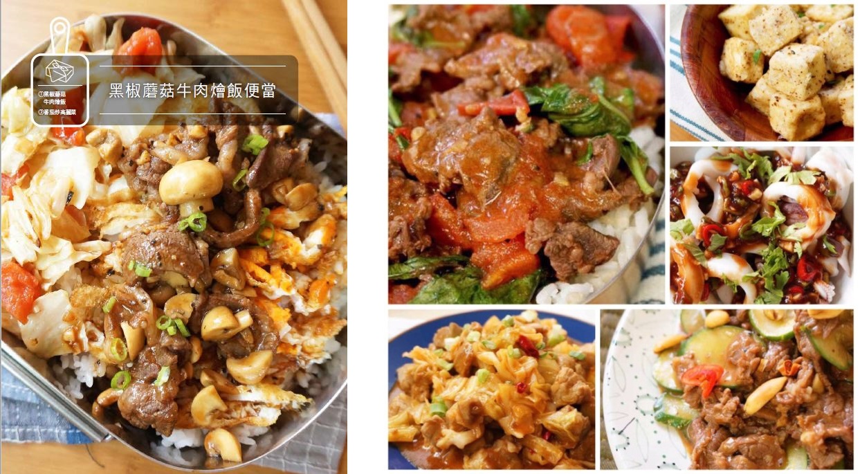糖醋高麗菜肉丁、黑椒蘑菇牛肉燴飯、味噌豬肉蓋飯、塔香番茄牛肉丼