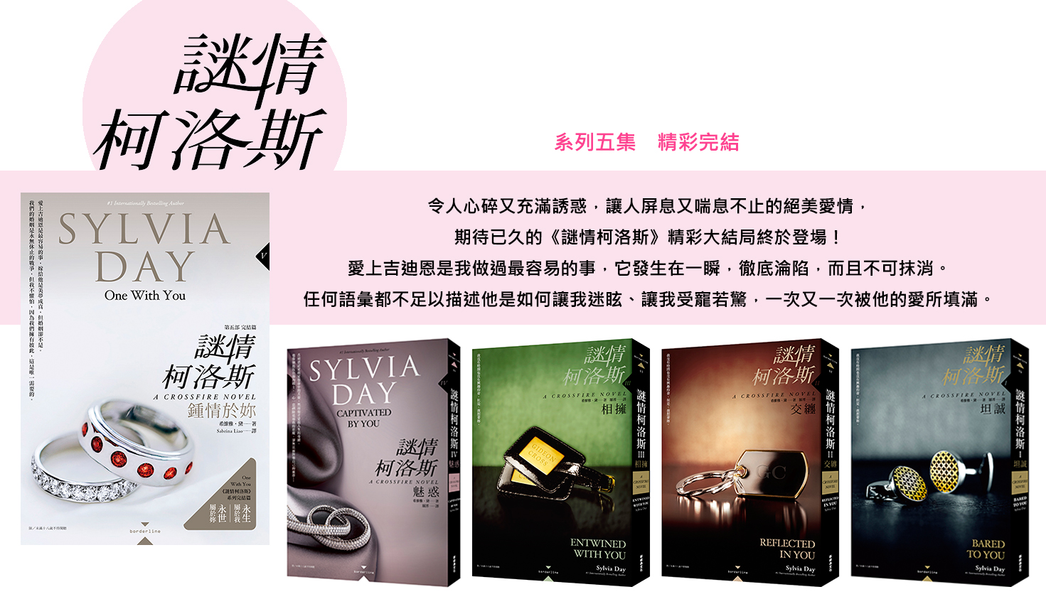 令人心碎和又充滿誘惑,讓人屏息又喘息不止的絕美愛情,期待已久的《謎情柯洛斯》精彩大結局終於登場!再一次,讓全球女性心馳神迷的吉迪恩將帶給讀者最深情的愛和感官的極致愉悅,帶我們體會最單純夢幻的靈肉合一之愛,攜手面對在愛情中我們都曾有過的懷疑和恐懼。
