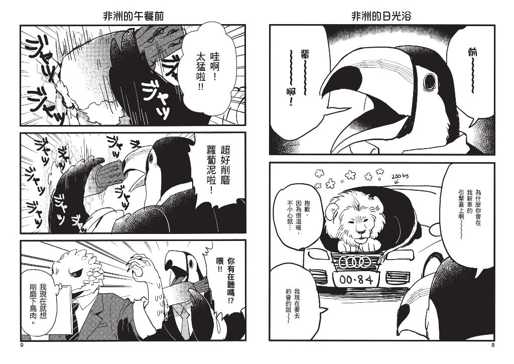 全本內容以短篇故事及短漫穿插而成,看似普通的職場故事,融入非洲動物們的生物特性後意外激發各種爆笑場面!詢問獅子如何好好養育下一代?你會獲得的建議就是把小孩推下懸崖喔(笑)