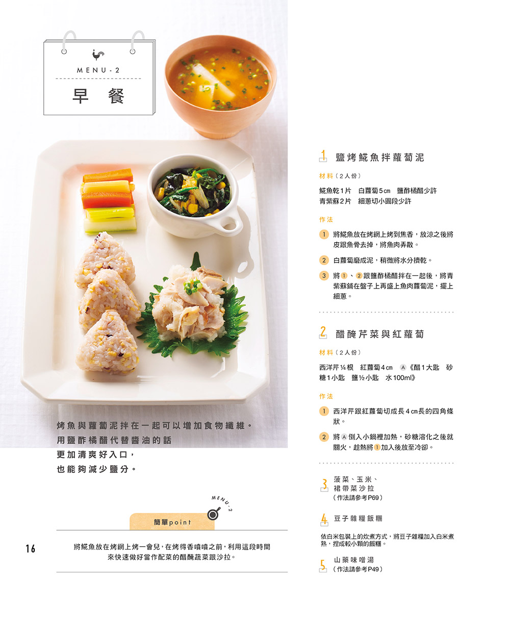 1.日式定食菜單+一只鍋子+2~3個步驟完成的小菜