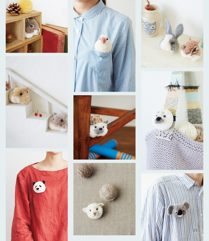 作者trikotri於2014年製作「森林動物們的毛線球別針」,