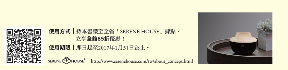 凡於讀冊、金石堂、誠品網路書店購買《踩踏京都慢時光:屬於我的休日單車風景》者,有機會獲得「SERENE HOUSE寶盒香氛精油旅行禮盒組」