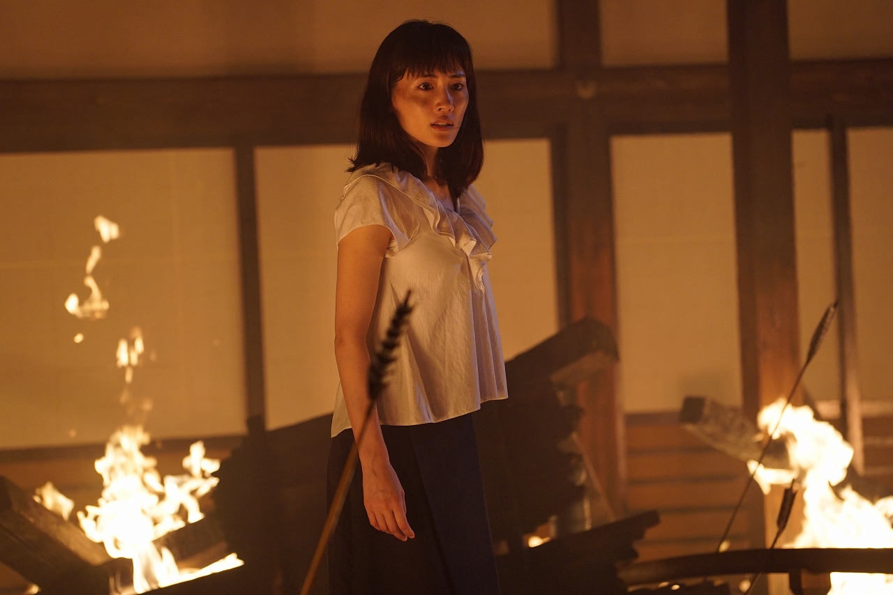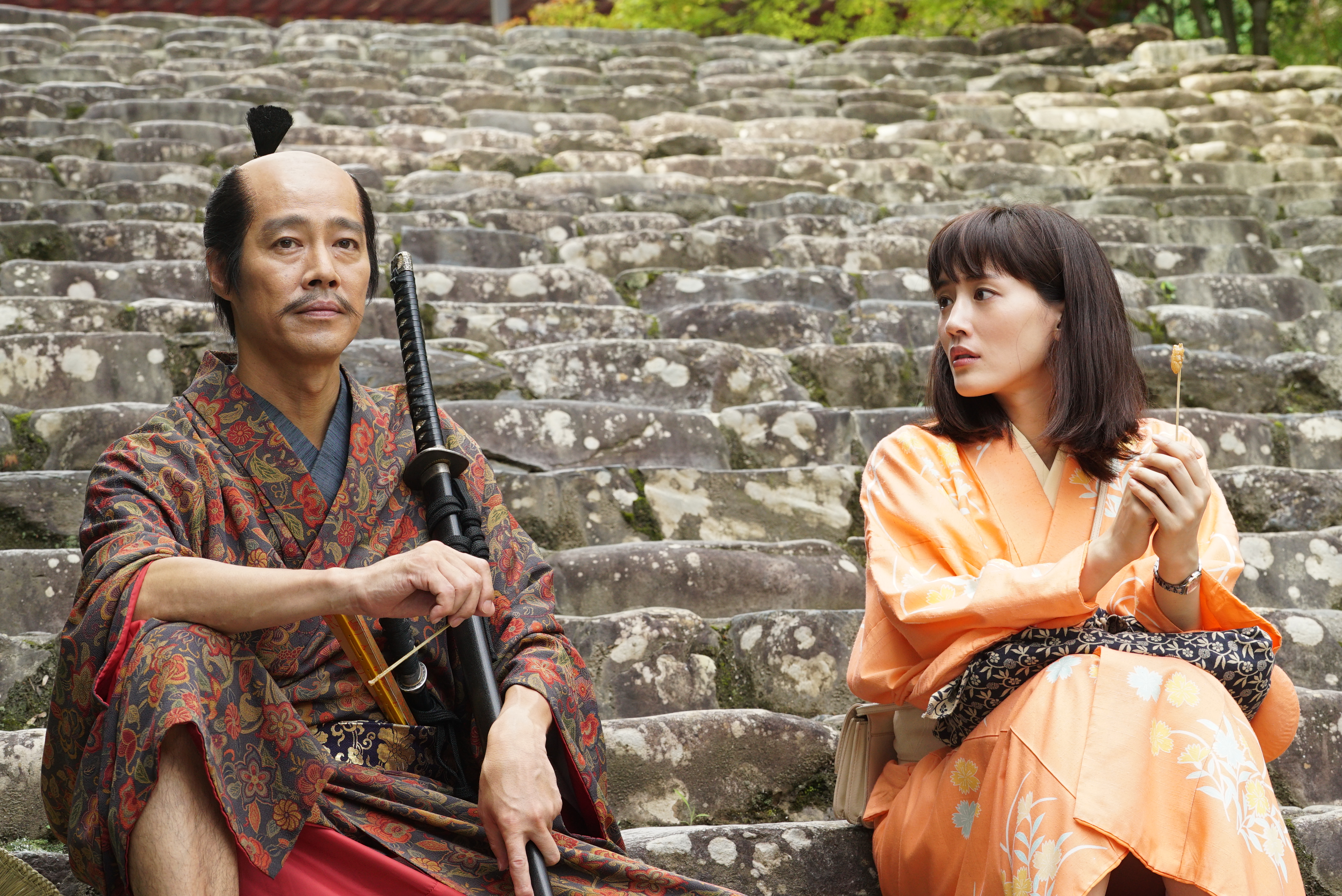 綾瀨遙宣布新婚不久便告急?近期以《海街日記》穩固日本電影一線女星的綾瀨遙,在新片《本能寺大飯店》中大顯搞笑功力,飾演一位即將新婚的人妻,在結婚前夕來到京都巡禮,竟意外踏進飯店裡的時空通道來到古代,遇見由堤真一飾演的織田信長。綾瀨遙與堤真一在《海街日記》中就曾合作飾演情侶,這次在《本能寺大飯店》裡再度攜手合作飾演男女主角,因為穿越時空的情節,「現代」的綾瀨遙搭上「古裝」堤真一的打扮,一登場便笑果十足,而兩人先前便已合作過,因此默契十足。
