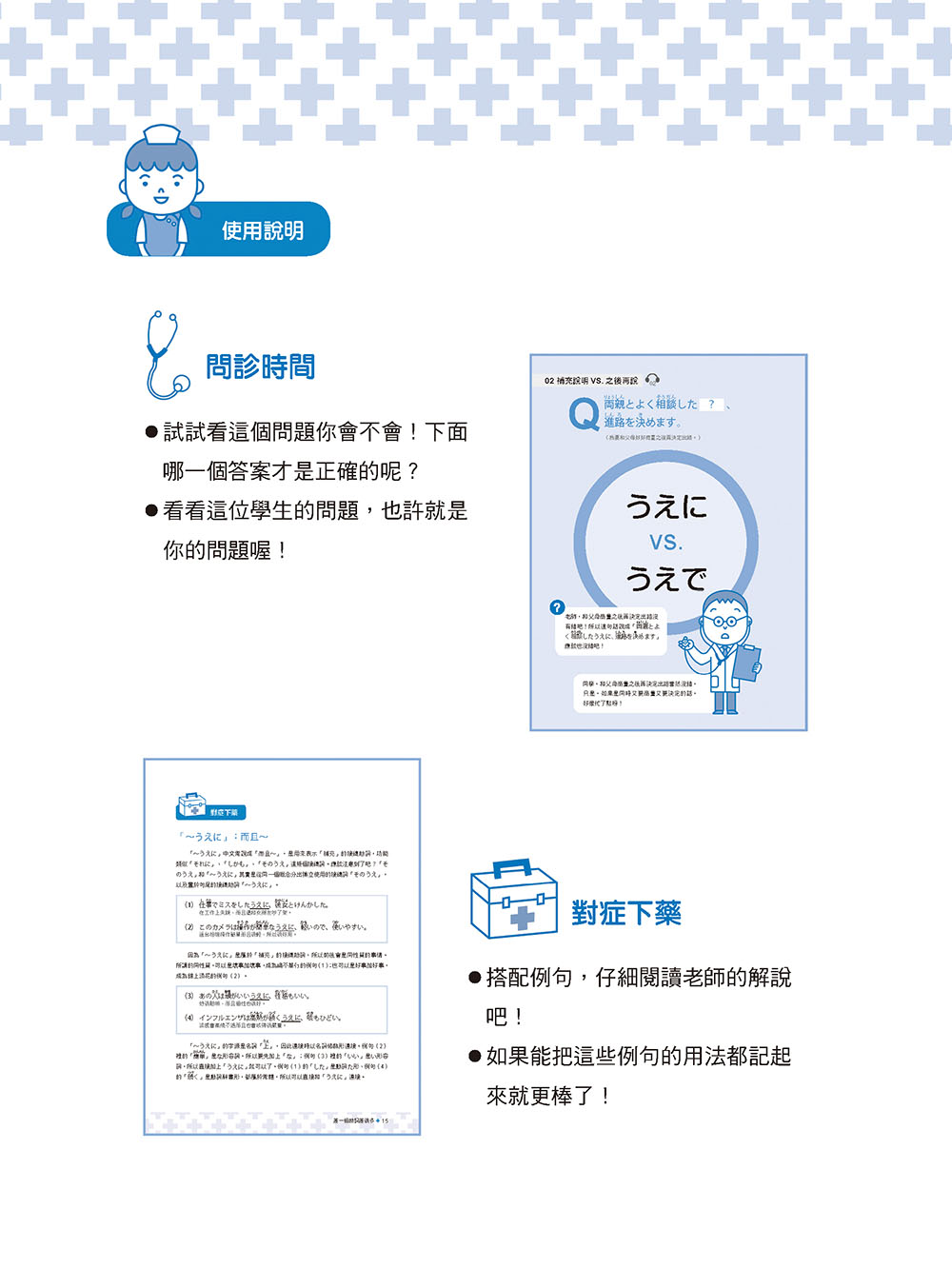只要簡單三步驟,就能診斷你的日語、針對文法痛點對症下藥、反覆練習讓你康復!