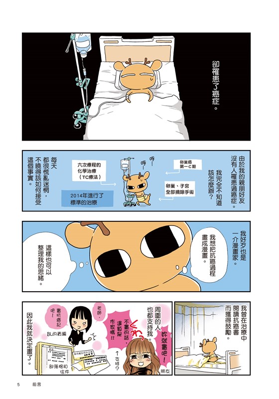 ●我得了卵巢癌,腹部也有手術過的縫痕。應該有許多人看過這本書後,有勇氣面對抗癌治療。當然,也包括我自己。