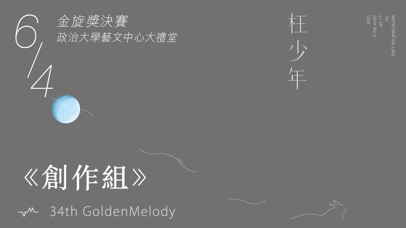 第34屆政大金旋獎決賽,將於6/4(日)於政治大學藝文中心大禮堂舉辦,獨唱組、重對唱組、創作組共25組參賽者,從海選及初賽中脫穎而出,即將在決賽把握實現夢想的舞台!
