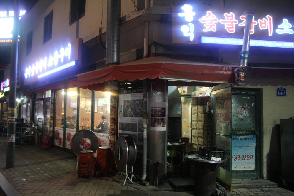 相信很多人都對這間烤肉店非常熟悉,因為「弘益燒烤」不只一次出現在人氣火紅的韓劇裡頭,從《祕密花園》開始到《忌妒的化身》還有近期的《舉重妖精金福珠》都曾經到此取景。說「弘益燒烤」是弘大商圈裡人氣最高的烤肉店也不為過,來訪過的人幾乎都對這裡的肉品讚不絕口,店內無時無刻都塞滿了韓國年輕人和慕名而來的外國遊客,炭火爐絲毫沒有空閒下來的時候。