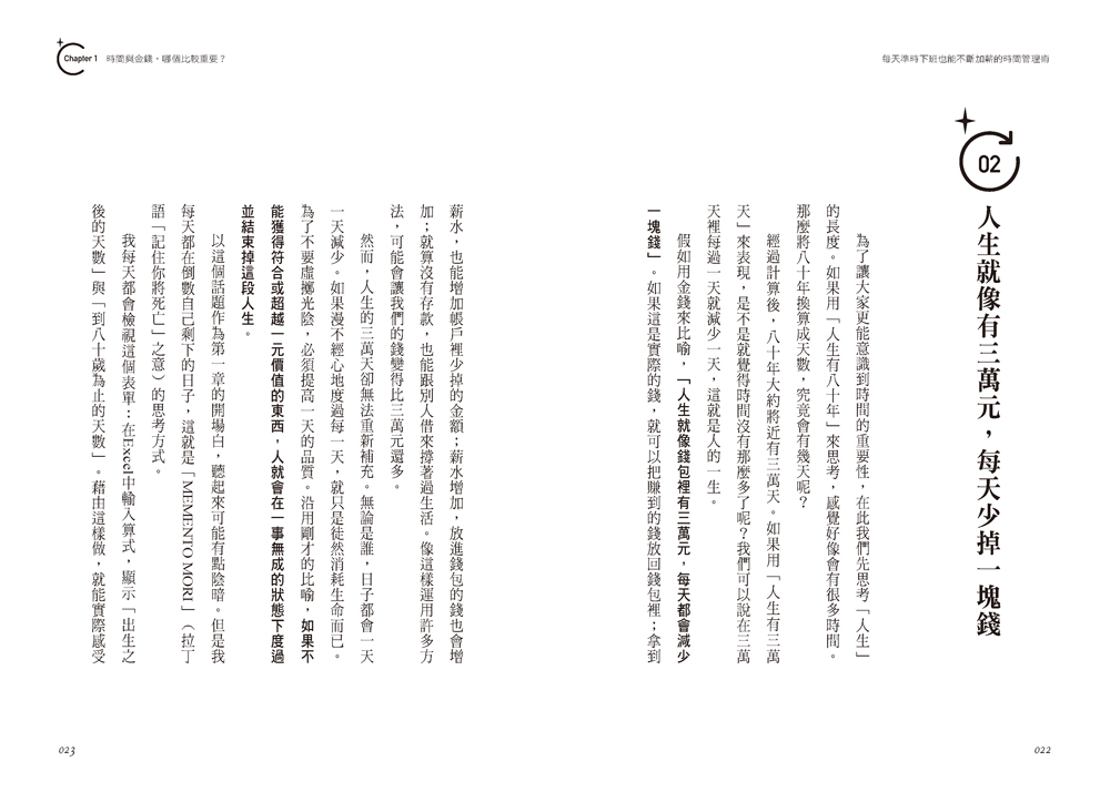 ◎傳達時間的真正價值,讓讀者了解比起「有錢但沒時間」,不如選擇「沒錢但有時間」。重視時間,才有機會達到「有錢又有閒」的理想狀態。