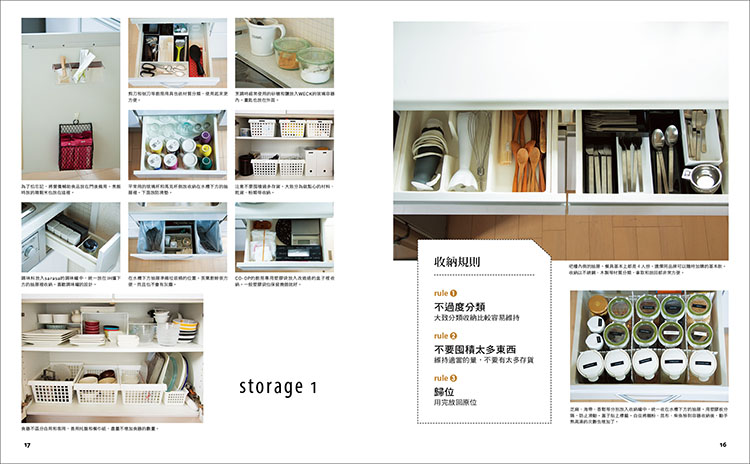 並非所有人一開始就非常擅長整理,而是經過不斷摸索,才找出對自己最輕鬆、對家人最方便的收納方式。打造舒適的廚房空間,既不是模仿「某某人家漂亮的廚房」,也不是「羨慕但無法實踐的優雅廚房」,而是「自己覺得舒適方便的廚房」。在這樣的廚房,每天的烹飪和清潔變得享受,有效率的廚房還可省下時間做自己想做的事。