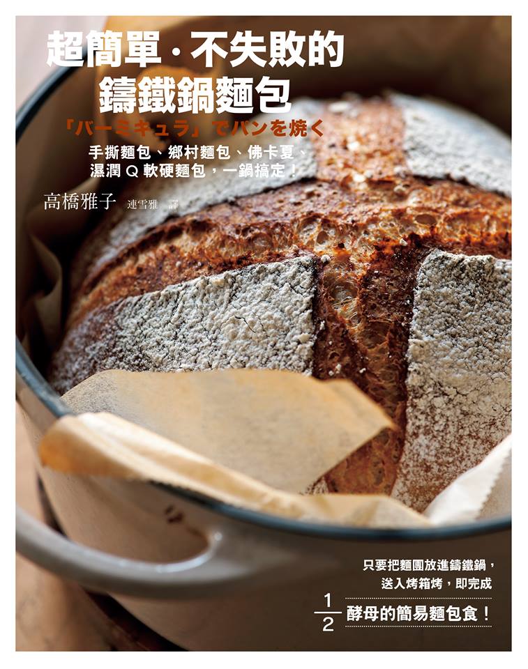 只要把麵團放進鑄鐵鍋,送入烤箱烤即完成1/2酵母的簡易麵包食!