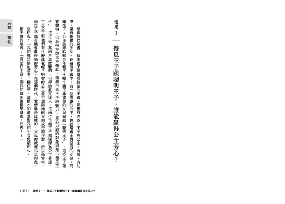 2.深度與廣度兼具的哲思啟蒙讀物:本書將「安慰劑悖論」、「說謊者悖論」、「紐康悖論」等經典邏輯悖論及論證與生活經驗結合,主題囊括愛情、政治、平等、生死、自由、宗教、道德、藝術,或將哲學主題以有趣的童話故事改寫包裝,適合初探哲學領域的大眾讀者。