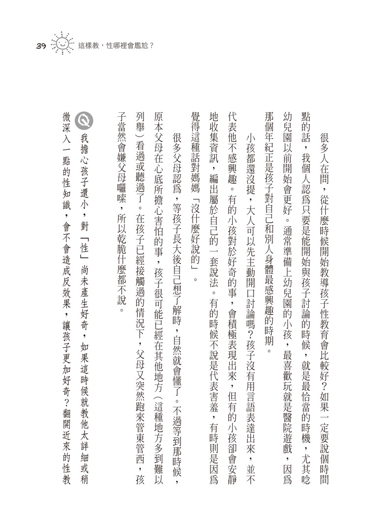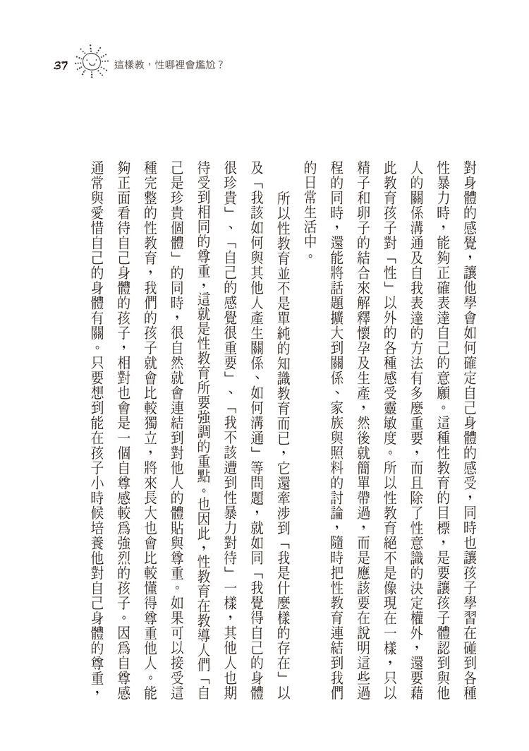 本書以「擁有開闊心態的大人,才能培養出擁有良好性觀念的小孩」為題