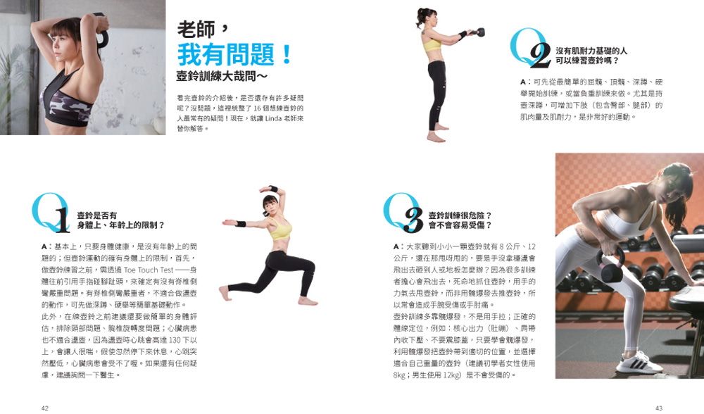 1.動作易懂,最好學的壺鈴書:Linda老師親身向壺鈴專家學習,化繁為簡,內化出最利於初學者練習的方法,健身初學者也能上手。