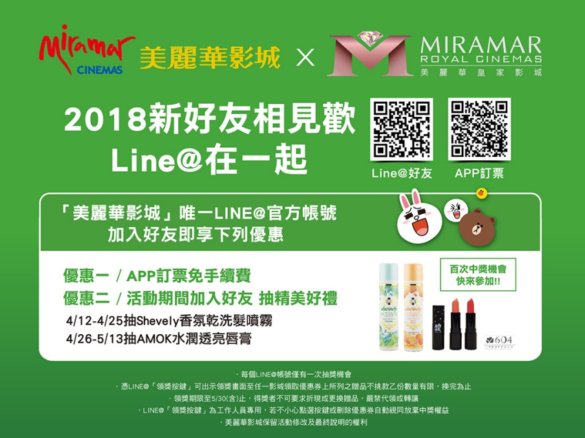 「美麗華影城」唯一LINE@官方帳號,2018新好友相見歡!