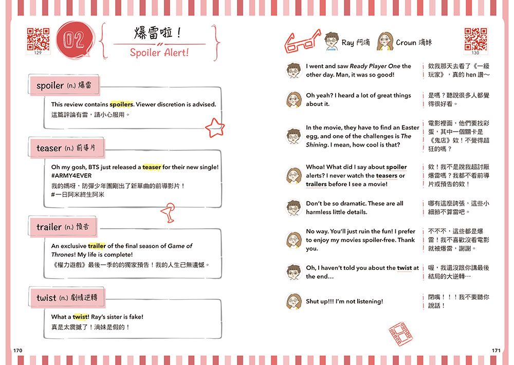 每頁皆有QR Code,隨手一掃,就由阿滴滴妹親自為你示範對話與例句!閱讀文字、搭配聲音、並練習說出來,三步驟有效提升你的英文口語能力!