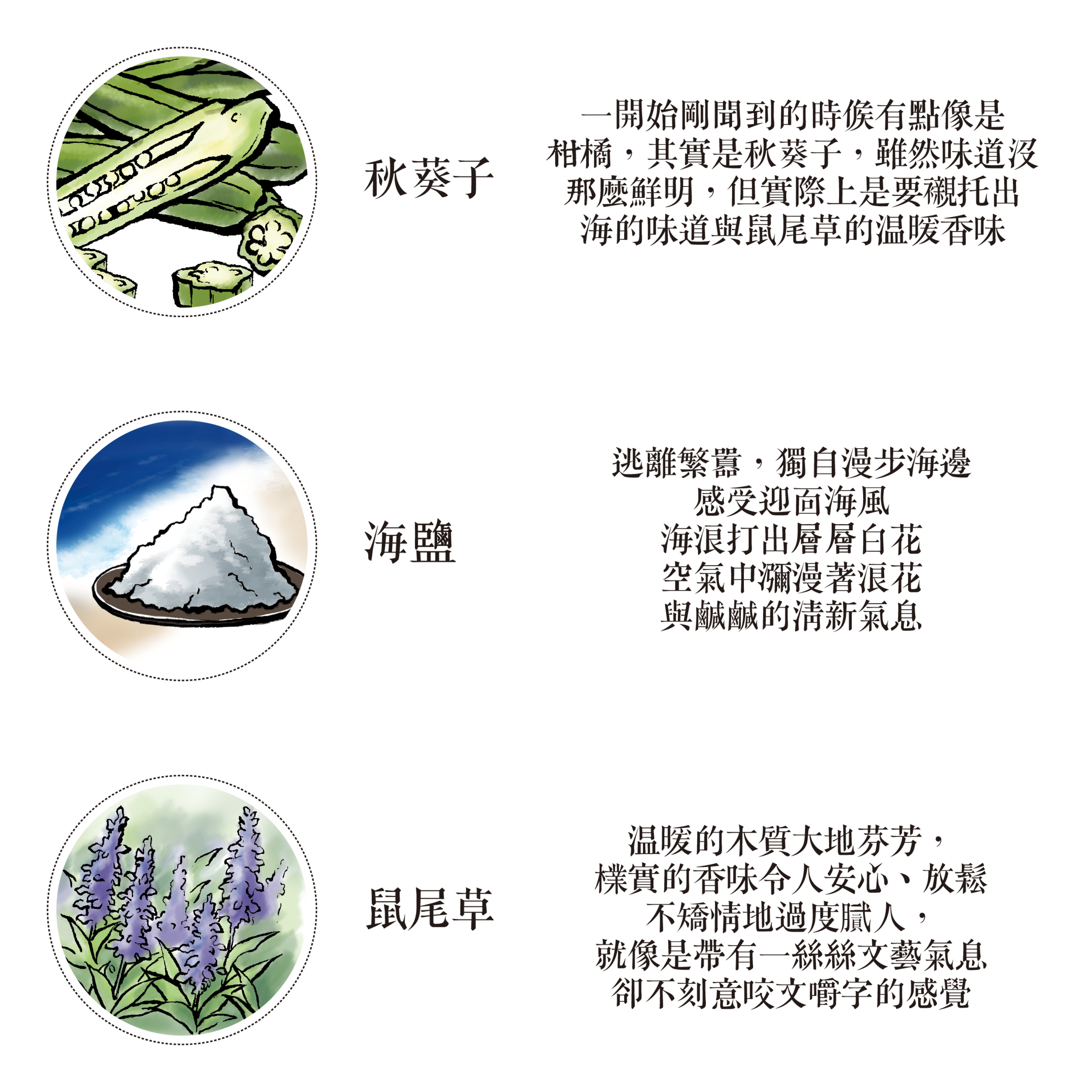 仿若置身於微風徐徐的海岸邊,海浪翻捲出細碎的白色泡沫,空氣中瀰漫著海鹽和水花的清新,懸崖上獨有的天然礦物香調,揉合著鼠尾草的木質大地芬芳。