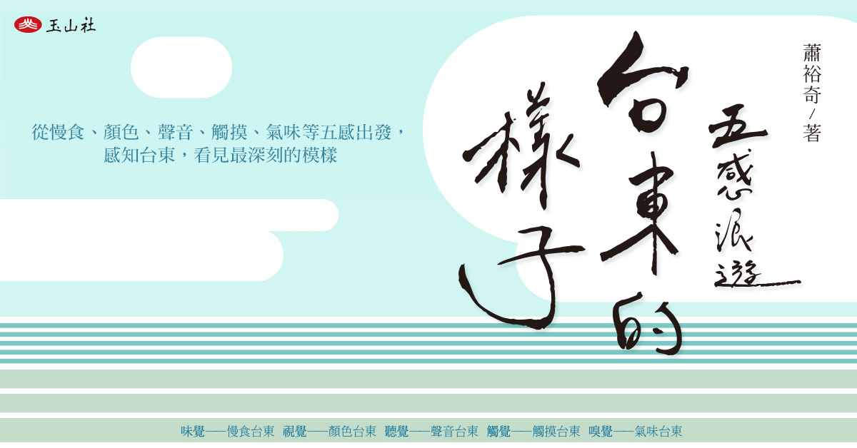 繼《緩慢。台東。旅》、《寂靜。京都。台東》後,他再次將台東書寫成專書,細膩的情感與緩慢的步調依舊,但更要打開讀者的各種感官。