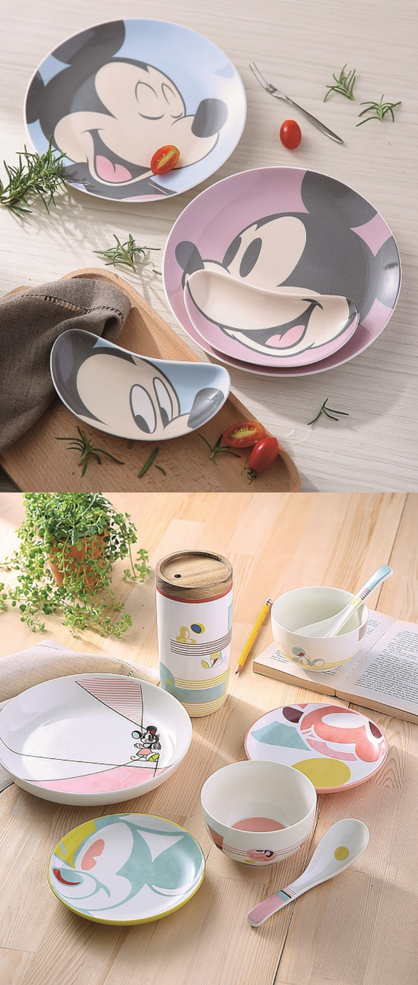 幫男孩找找電眼、幫女孩找找笑容的HOLA米奇/米妮系列餐盤,一盤一碟的組合,當碟子置於盤內,米奇的表情宛如四川變臉瞬間不一樣,不論是換上逗趣的米奇大眼,或是笑開懷的米奇大嘴,用設計幽默平凡的日常生活!