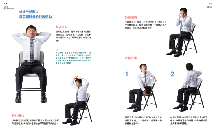 一下班後就連手指都不想動/提升業務能力又能供給氧氣的伸展運動 /當疲勞感來襲,趕走瞌睡蟲的伸展運動/在會議開始前,能培養自信心的書桌前伸展操/能達到運動效果的休息室5分鐘舒緩操