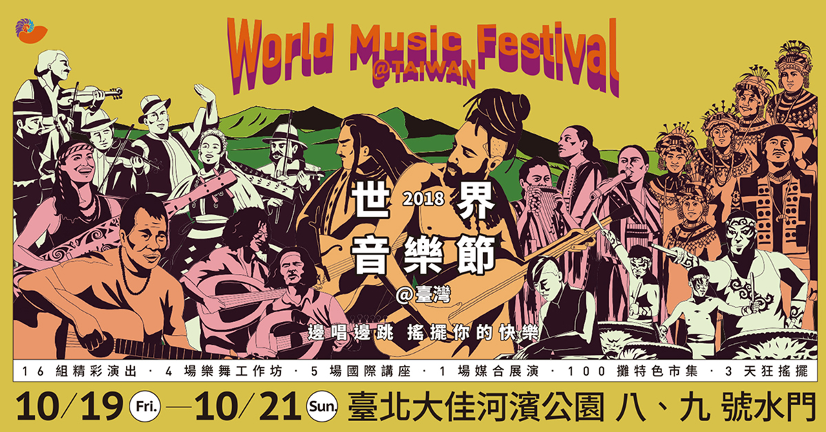 由文化部影視及流行音樂產業局主辦,風潮音樂承辦的「2018世界音樂節@臺灣」(2018 World Music Festival @Taiwan),今年10月19至21日將再度於臺北大佳河濱公園盛大登場。