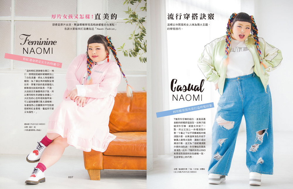「棉花糖女孩」這個名詞從2014年開始取代「胖女孩」,並且有愈來愈多的胖胖女生走入演藝圈,甚至成為極受歡迎的明星、名流,也因此,有愈來愈多的大尺碼服飾店在街頭與網路上出現。但,妳真的知道自己適合什麼嗎?──別以為只要follow網紅的穿衣風格就是美!如果對於自己的身形特色並不清楚,當然也就沒有辦法運用正確的穿衣技巧把自己的優勢展現出來!