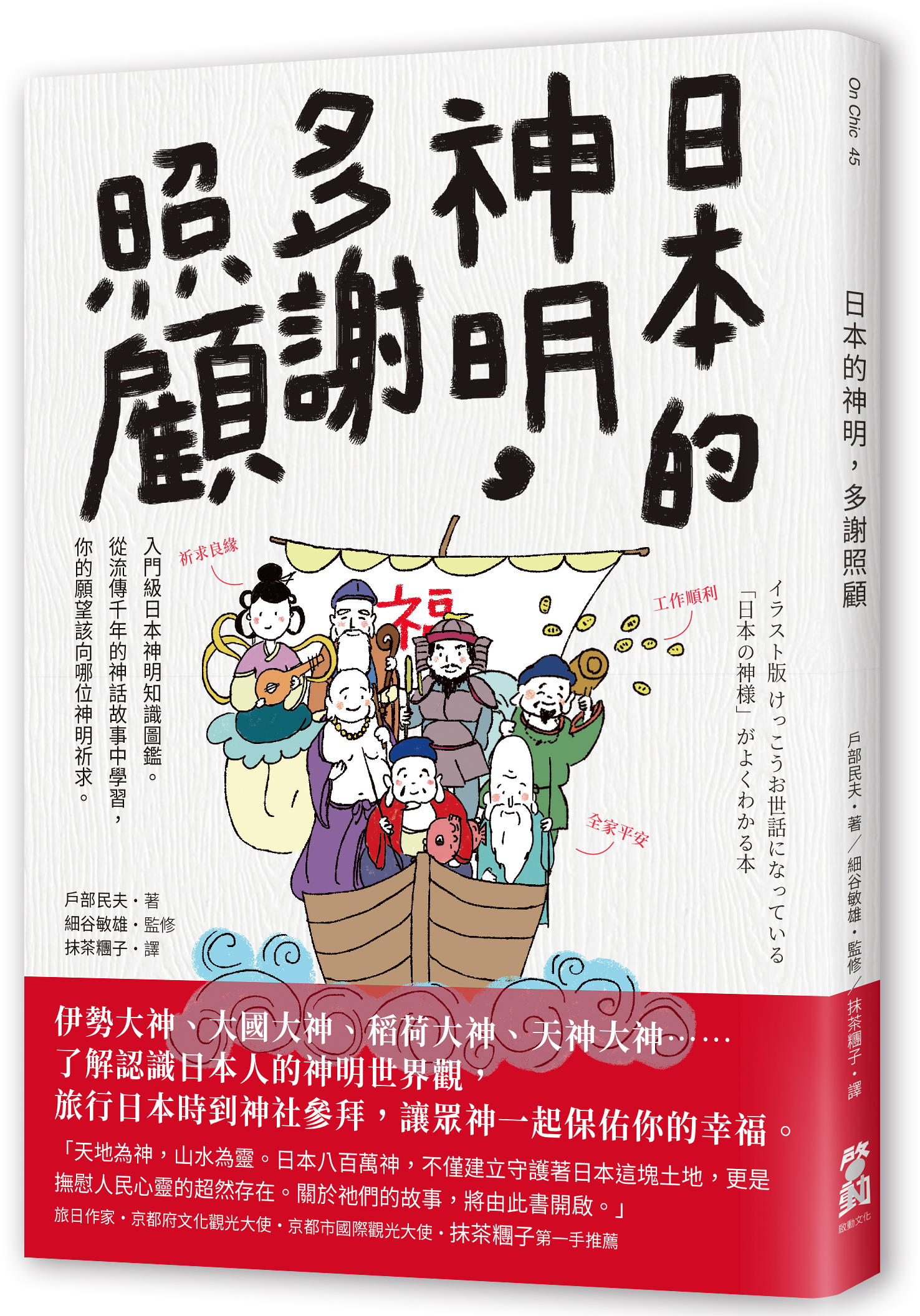精選與日本人最息息相關的神明們,條列其御神恩(保佑的事情)、正式名稱、別稱及神格,再透過神話故事,每位神明的個性立現,關於守護領域緣由也清楚呈現。讓大家理解,神明是多麼親切地存在於你我之間。「希望全家平安」「祈求獲得良緣」「想要工作順利」⋯⋯你心中的願望,也能夠知道要跟哪位神明訴說,才能祈願成功、順利獲得實現。