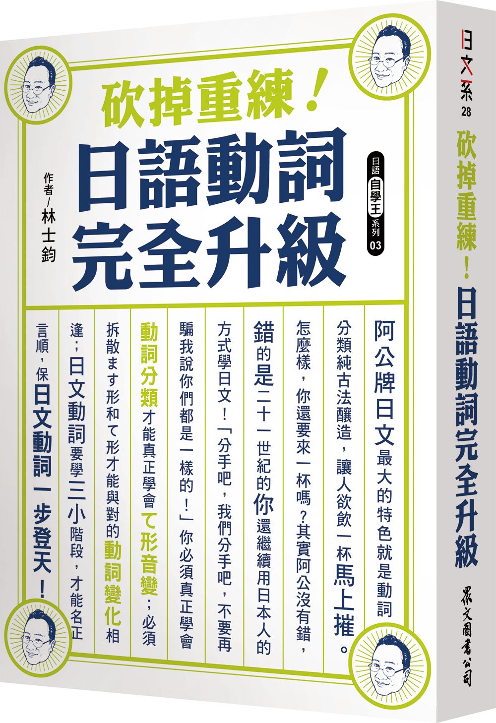 他曾說想寫出一本「日文簡史」,向寫出《時間簡史》的已故物理學大師霍金博士致敬,所以跟編輯部提出這個可稱為「動詞寶典」的企劃案。希望寫出一本讓每一個正想學動詞變化、正在學動詞變化、放棄學動詞變化和不想學動詞變化的人都看得懂的日文動詞簡史。但是據說在撰稿之際,金庸大師仙逝的消息讓他大受打擊,一個人躲在思過崖看《笑傲江湖》。也因此,本書還來不及像「時間簡史」一樣暢銷237週,他就先拖稿了37週,預產期都快過了,實在是讓編輯部感到非常困擾。他曾狂(ㄏㄠˊ)妄(ㄒㄧㄠˊ)的說,由於目前的版稅拿來付房貸綽綽有餘,所以補教復出之日遙遙無期。若所言屬實,要感受名師如沐春風的教導,只能依賴此書。別擔心,這本書絕對能讓你親身感受名師的風範,正所謂,音容宛在是也。