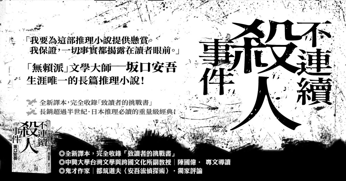 ‧坂口安吾以一種「過剩的美學」,表達對推理小說的狂熱與想像,這正充分地展現戰後初期日本推理小說,在古典本格形式與文學性中擺盪的時代象徵。──陳國偉