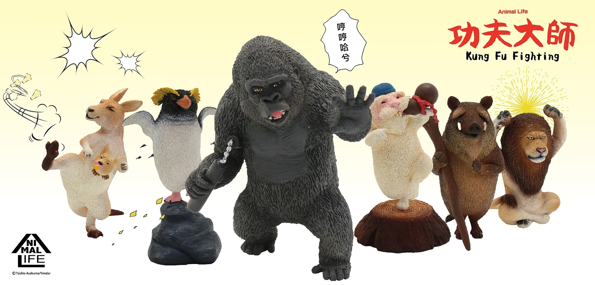 研達國際與日本動物原型大師「朝隈俊男」老師攜手霸氣之作Animal Life 「功夫大師」,喚起你我內心的功夫魂! 這世界紛亂無比,就讓功夫大師們打通你的任督二脈。去吧!維護世界和平就靠你了!!!