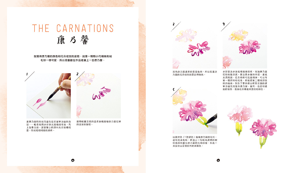 ✲ 不用刻意模仿,以顏料和水自然擴散暈染的特色自由創作出寫意的花草繪,享受色彩變化來的驚喜。