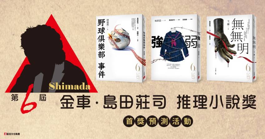 請在第6屆【金車島田莊司推理小說獎】決選入圍作品《野球俱樂部事件》《強弱》《無無明》中,並留言選出你最看好的作品書名投下你神聖的一票!