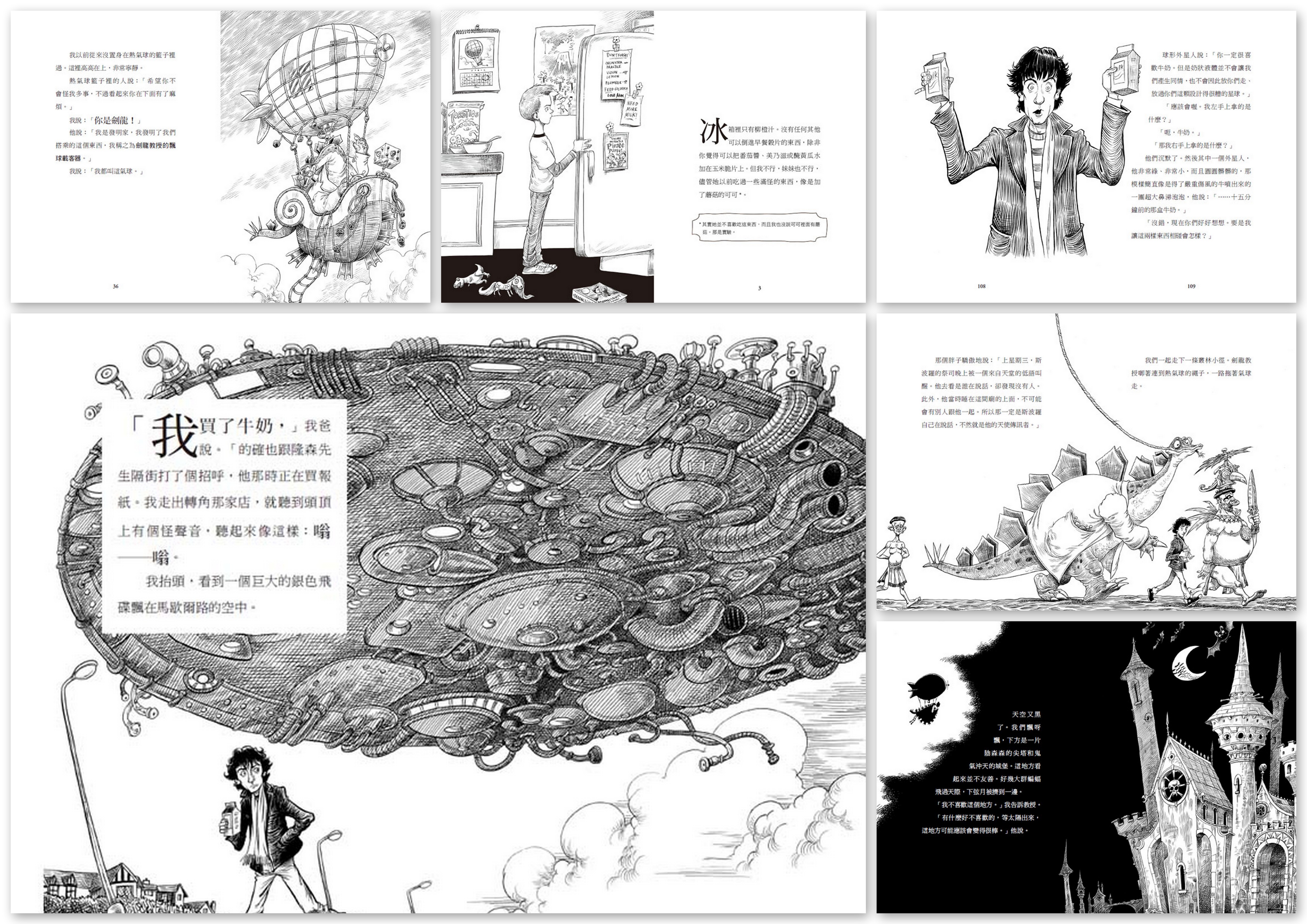等到快餓死的時候,爸爸終於回來了!但是,他不只真的記得帶了一瓶牛奶回來,還帶回來一個超級誇張的冒險故事——被外星人綁架、遇到海盜、被恐龍科學家帶走、坐上時空機、遇見吸血鬼家族……那他到底是怎麼回到家的?