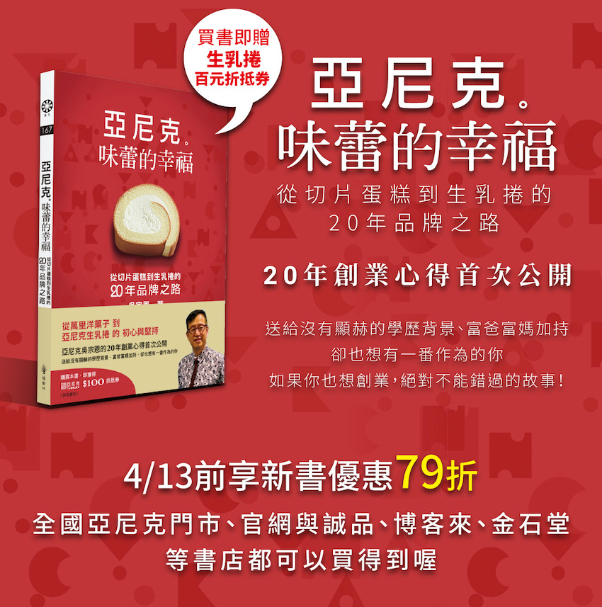 4/13前購買新書享79折優惠;購書即贈「生乳捲100元折抵券」