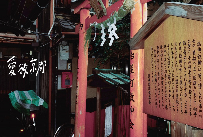 「鐵環井」(日文漢字「鉄輪井」)在京都下京區堺町「命婦稻荷社」內,一家僻靜的民宅旁。門前石碑寫著「鐵輪跡」三個字。