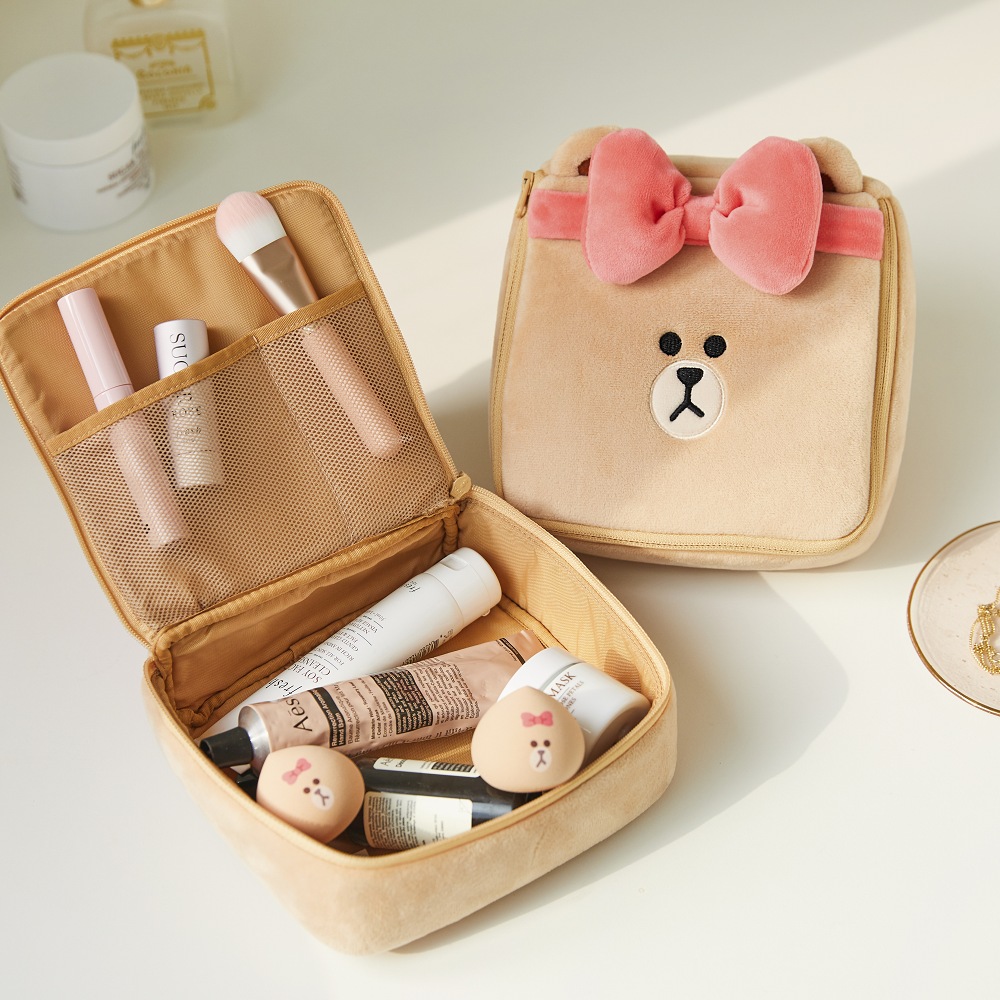 LINE FRIENDS可愛、軟萌、貼近日常生活的形象,總是擄獲了大小朋友的心,無論是熊大、兔兔、莎莉或熊美,都各自有一群死忠粉絲,這次以時尚萌少女CHOCO熊美為主題,推出珊瑚粉色系美妝商品,包括粉撲、美妝蛋、髮箍、髮圈、髮捲、洗臉髮帶、化妝包、零錢包、手拿鏡、眼罩等一共10款新品,為玩美女性,打理好日常生活所需,從早到晚不同時刻都需要的美妝小物,準備攻佔少女們的化妝桌!
