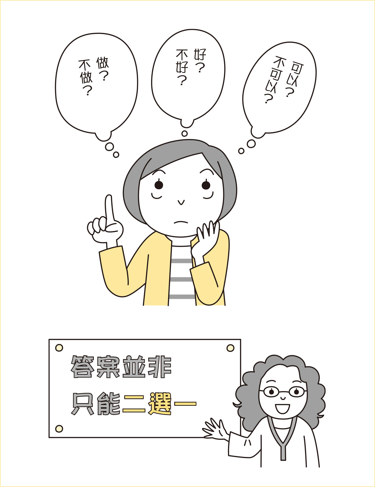 「尊重對方」與「不給人添麻煩」,不等於要對他人言聽計從。這時你更應該做的,是回頭好好傾聽,內心被排擠已久的聲音,探察自己為何「容易受他人影響」,重新確立想要前進的方向,才能找出具體的對策,在人際互動中保有自己的步調,又不會招致反彈或壓力。