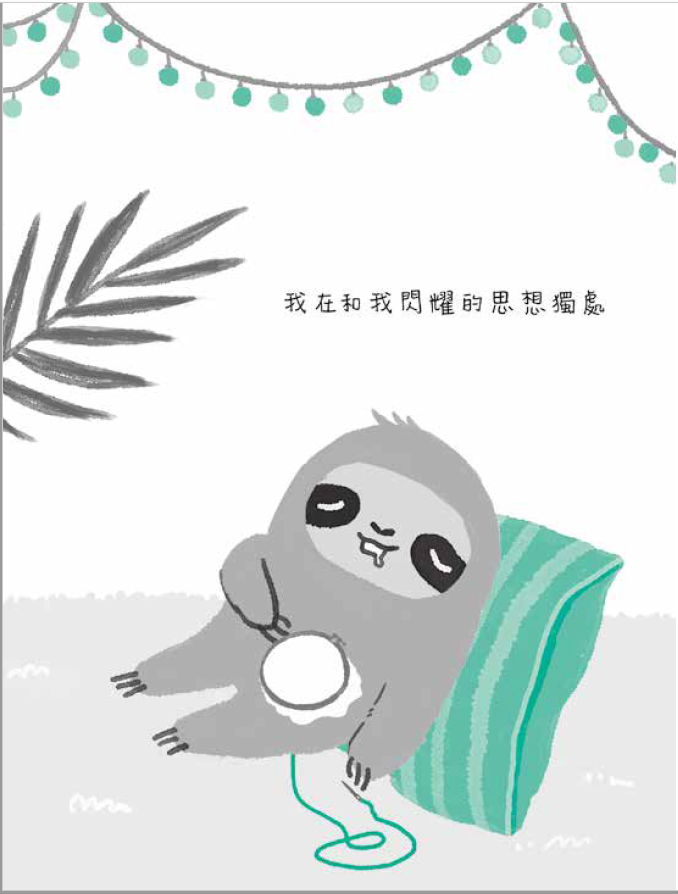 有沒有覺得輕鬆多了?樹懶式生活哲學是一種越單純越好的態度,一種不用力的生活方式。所以不用急,慢慢來。書裡還有很多很棒的建議,隨便選一個來試看看,你會發現焦慮指數降低了,快樂變得更容易。