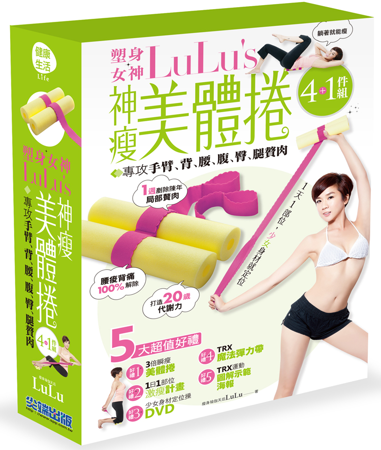 LULU老師結合風靡日、韓的「骨盤枕」+流傳在好萊塢明星間的「局部精雕利器-TRX」原理,再進化、提升設計的「神瘦美體捲」,搭配史上唯一超值贈送「少女身材定位操示範DVD」 及「TRX門上海報」,幫讀者設想、解決各種使用上可能面臨的問題,獨自使用,絕對沒問題。