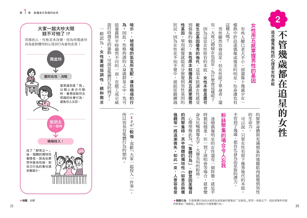 「女生真的很愛聊天嗎?」、「婆媳問題很難避免嗎?」、「為什麼男人不壞女人不愛?」、「購物衝動是女人的天性?」......