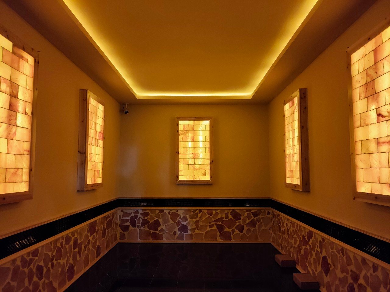 汗蒸室內滿佈喜馬拉雅山的玫瑰鹽岩瑰與鹽板,使用遠紅外線把室溫維持在40度上下(±2℃),室內濕度適當調節,不會覺得悶熱,温暖的空氣也不會有燥熱感。全台灣最大的天然砭石礦石床讓你最健康最有感的汗蒸體驗。每位客人使用完後立即進行清 潔、消毒,環境衛生讓人安心無虞。