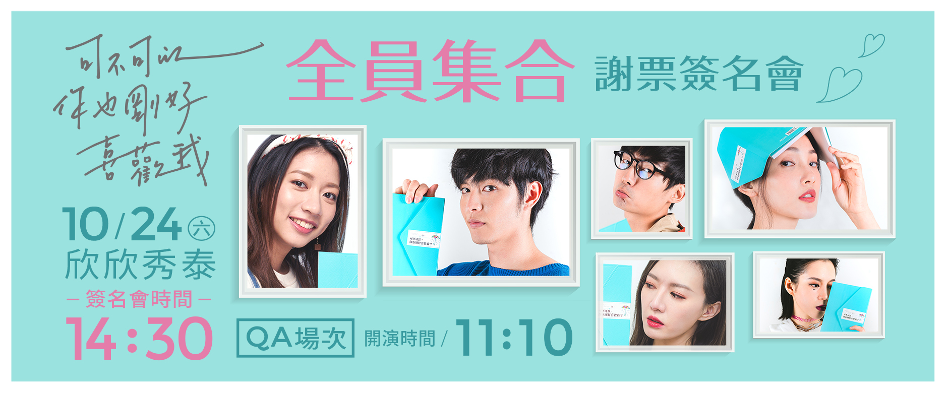 改編自百萬療癒系作家「肆一」的同名暢銷散文電影《可不可以,你也剛好喜歡我》熱映話題持續發燒,於10/24(六)欣欣秀泰影城舉辦粉絲見面簽名會,邀請到男主角-曹祐寧、作家肆一及劇中演員們再次與觀眾朋友們面對面,分享電影大小事,見面會當天還可以拿到親筆簽名電影海報喔