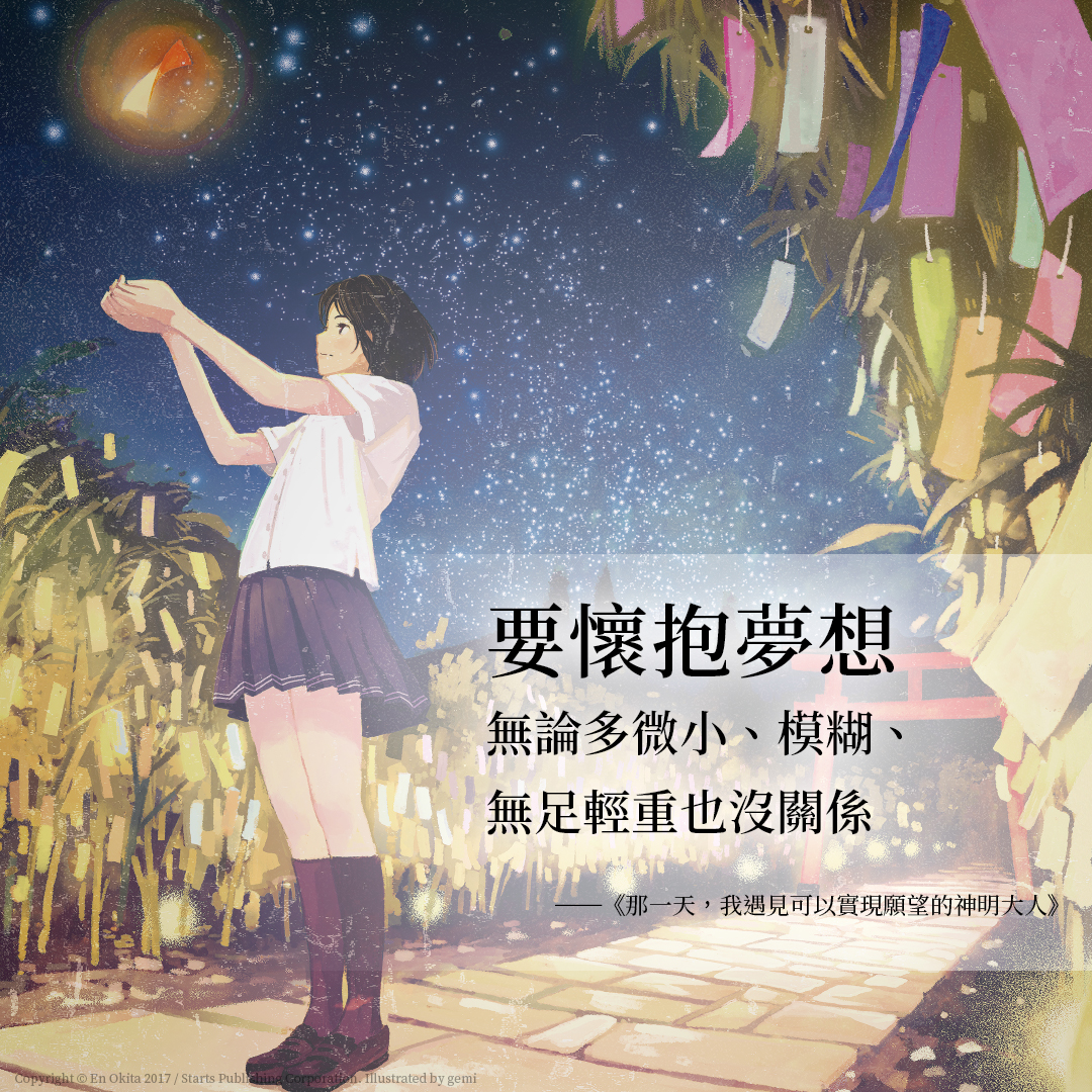 儘管有很多人會支持追夢者,卻沒有人願意支持毫無夢想的人。那至少要由我來支持像我一樣的人吧,我是抱著這個想法寫完故事的。雖然我力量薄弱,但請容我支持閱讀這本書的所有人,無論是正在追夢的人、放棄夢想的人,還是尚未有夢想的人。